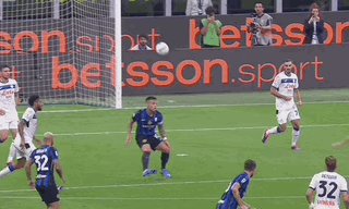 第38分钟,萨马尔季奇面对索默把守的大门,一脚推射踢偏了。