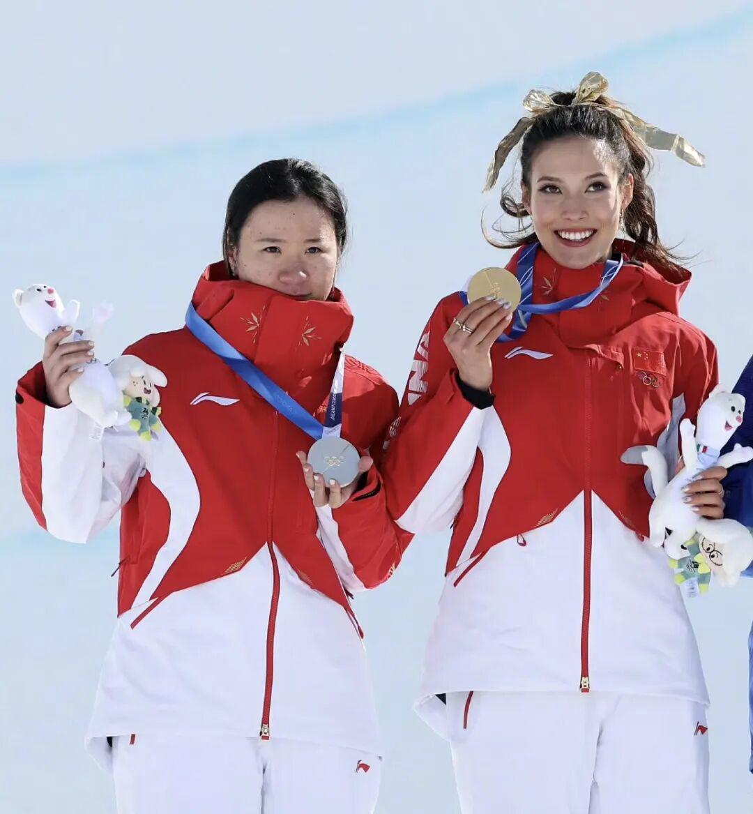 腾空、翻转、落地,不俗的表现让她收获了一枚宝贵的银牌,而谷爱凌实现了卫冕。这是属于两个中国姑娘共同闪耀的时刻。